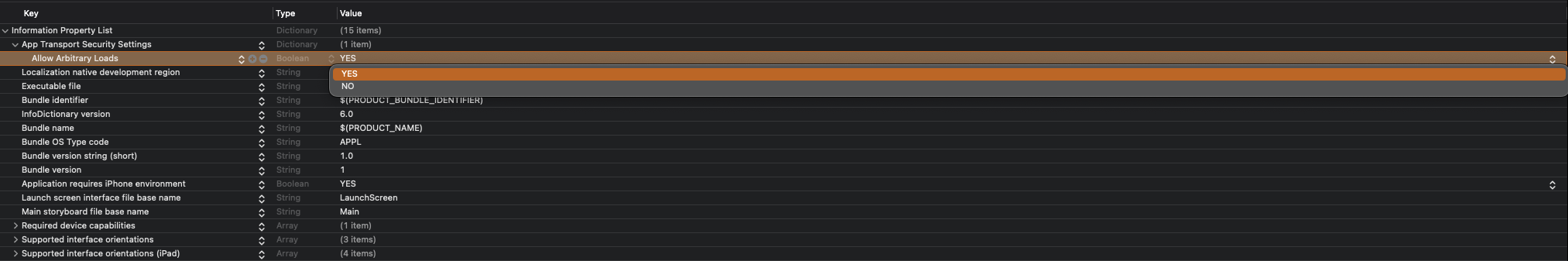 만약 충족할 수 없다면 앱의 ATS 설정을 변경해 HTTP 프로토콜을 사용하도록 허용할 수 있다.