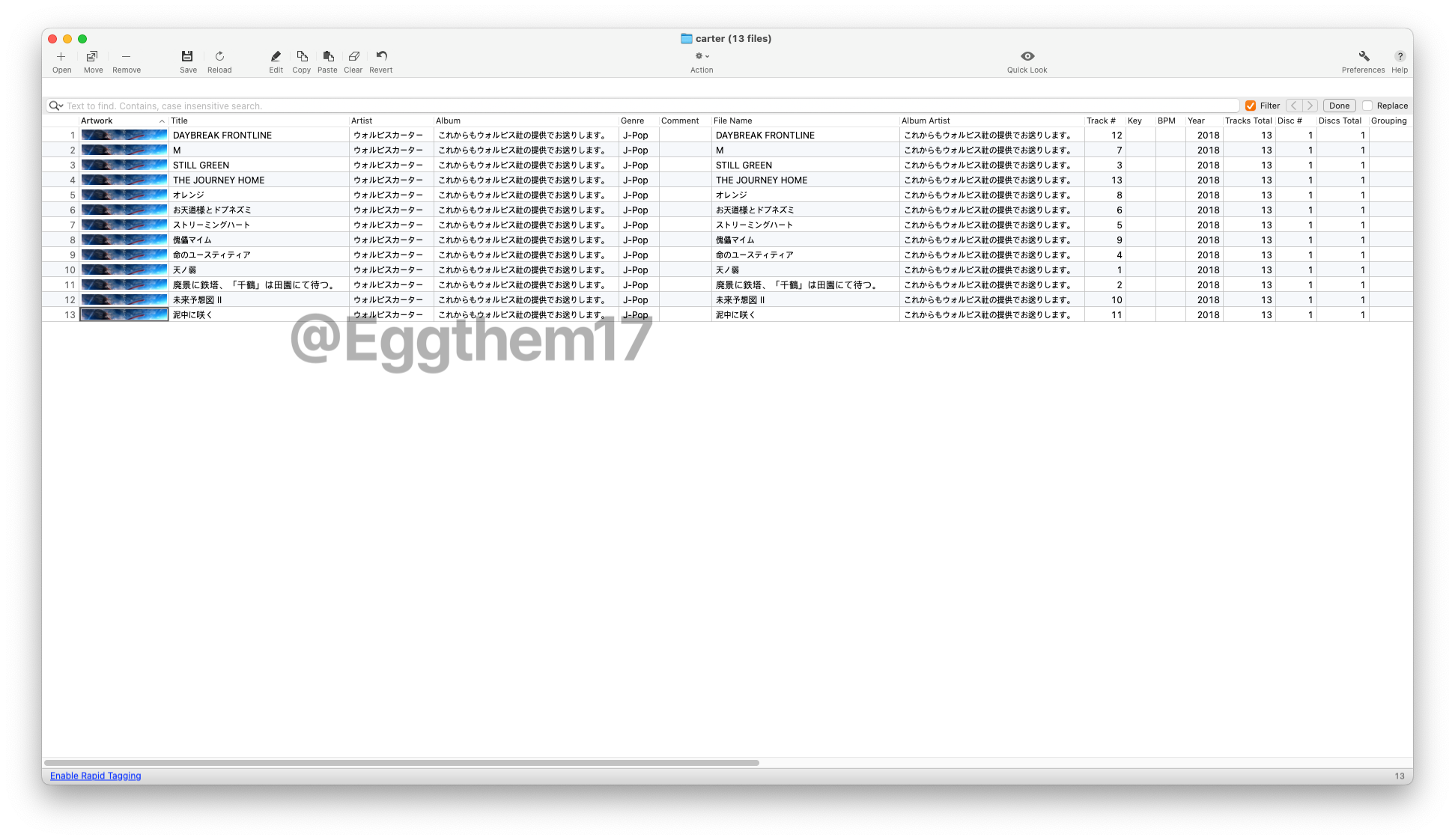 아마존에서 앨범커버를 구해 추가하고, 장르를 'J-Pop'으로, 파일 이름을 곡 명과 일치시키는 방식으로 태그를 수정하고 저장했다.