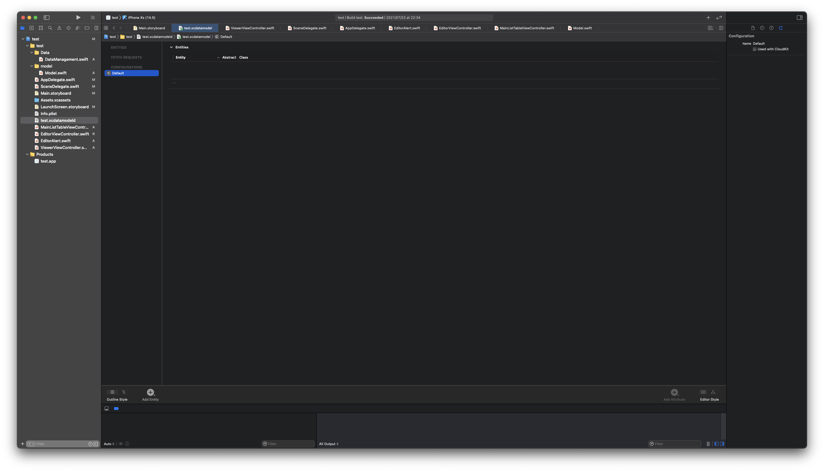 CoreData는 프로젝트 생성 시에 이미 활성화 해 둔 상태이고,
