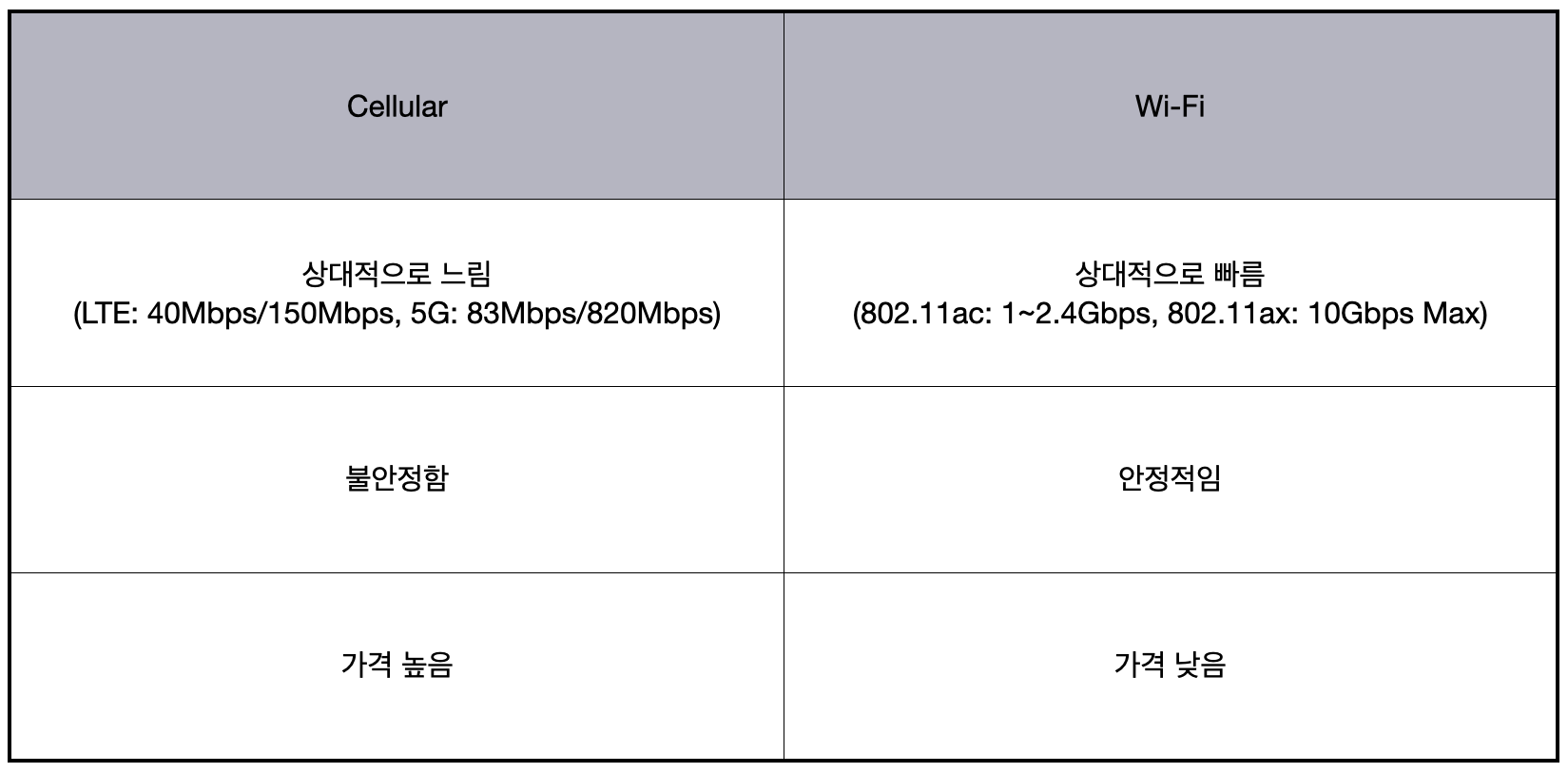위와 같은 차이점 때문에 네트워크를 사용하는 앱의 경우
