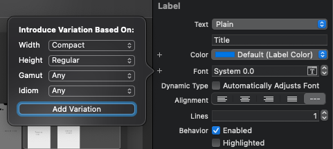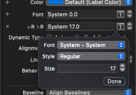storyboard에서 Font와 Color 앞에 '+' 버튼이 있는 것을 확인 할 수 있다.