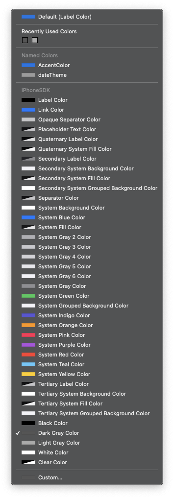 단, 셀에서 날짜를 표시하는 레이블들이 기본 색상이 아닌 Custom Color를 사용했는데,