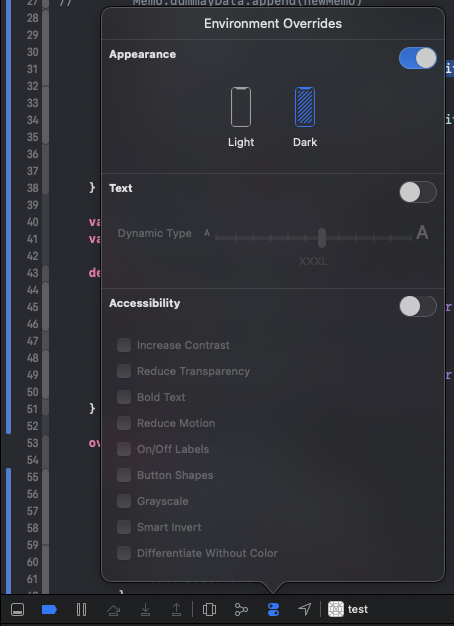 좌측 하단의 Environment Overrides의 Appearance를 통해