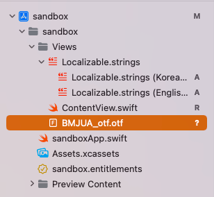 폰트 파일의 File Inspector에서 Target Membership이 앱으로 잘 지정돼 있는지 확인한다.