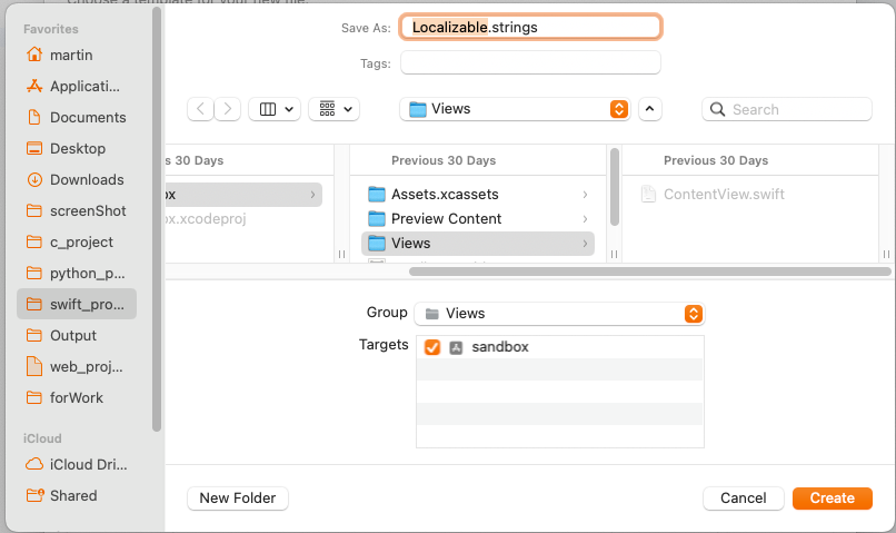 프로젝트 내에 'Strings File'을 생성하고, 이름을 Localizable로 변경한다.