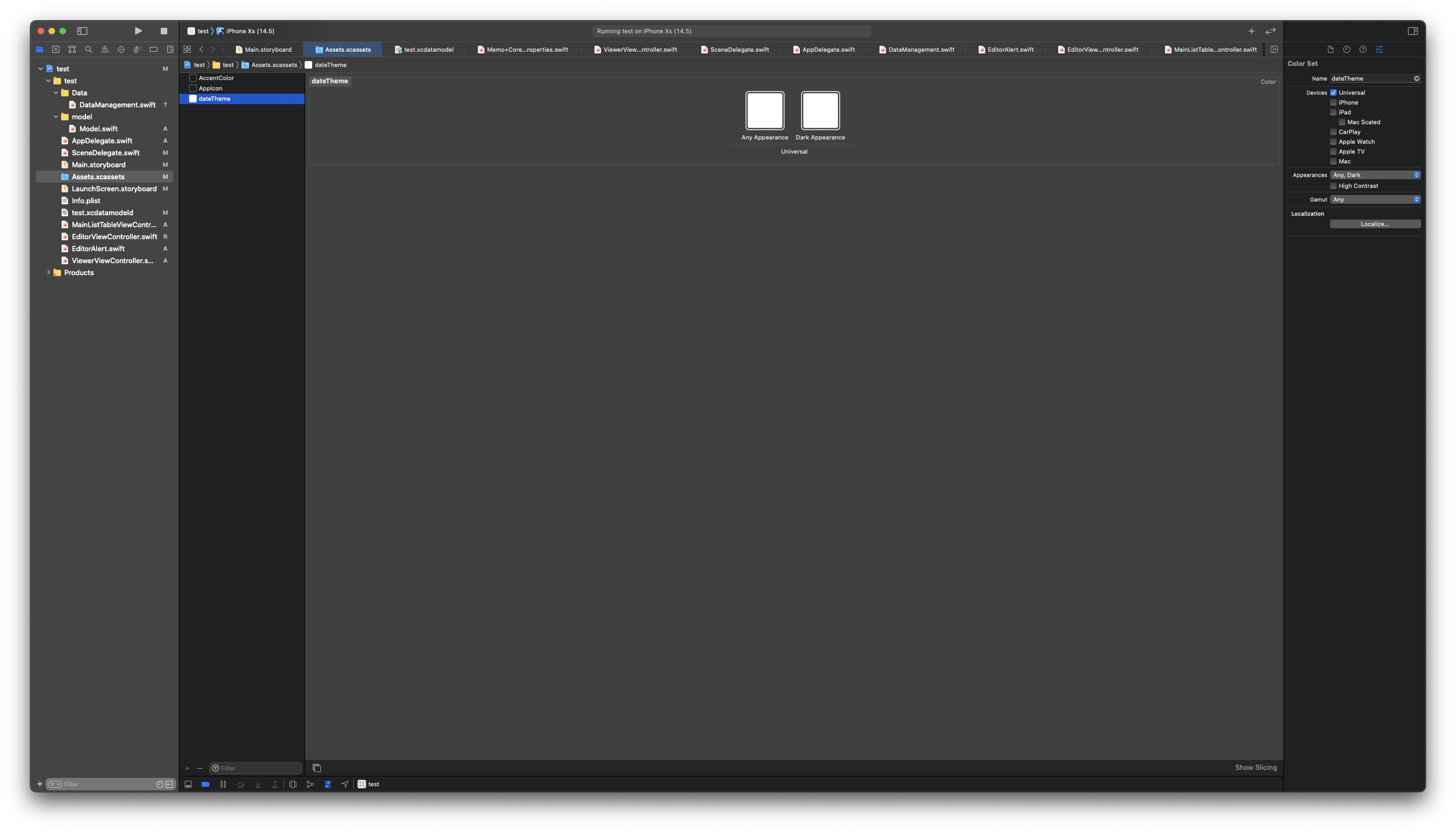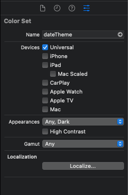 컬러셋의 Appearances 부분이 기본으로 'Any, Dark'로 설정되어 있었다.