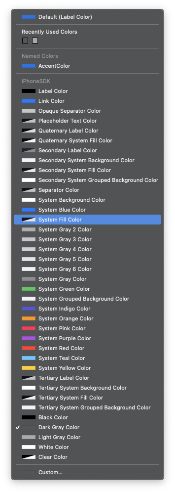 iOS에서 제공하는 여러 컬러 옵션 중 'System', 'Secondary', 'Tertiary'로 시작하는 옵션은 다크모드에 자동 대응한다.