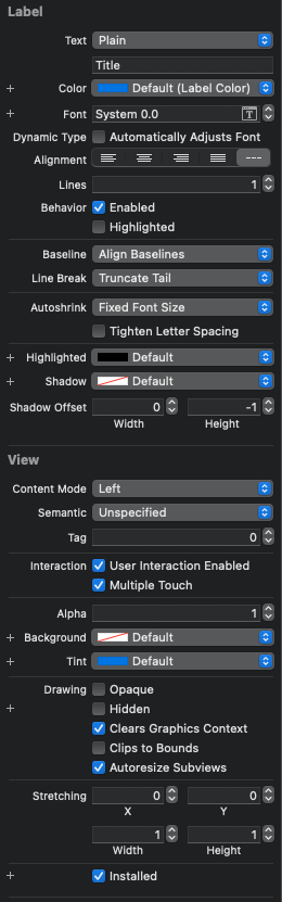 storyboard에서 Font와 Color 앞에 '+' 버튼이 있는 것을 확인 할 수 있다.