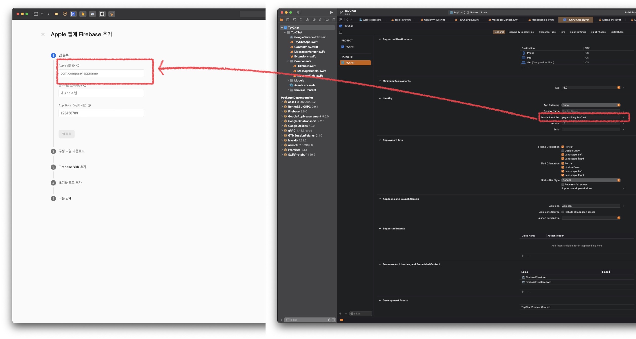 Xcode 프로젝트의 Bundle Identifier를 입력해 주면 된다.