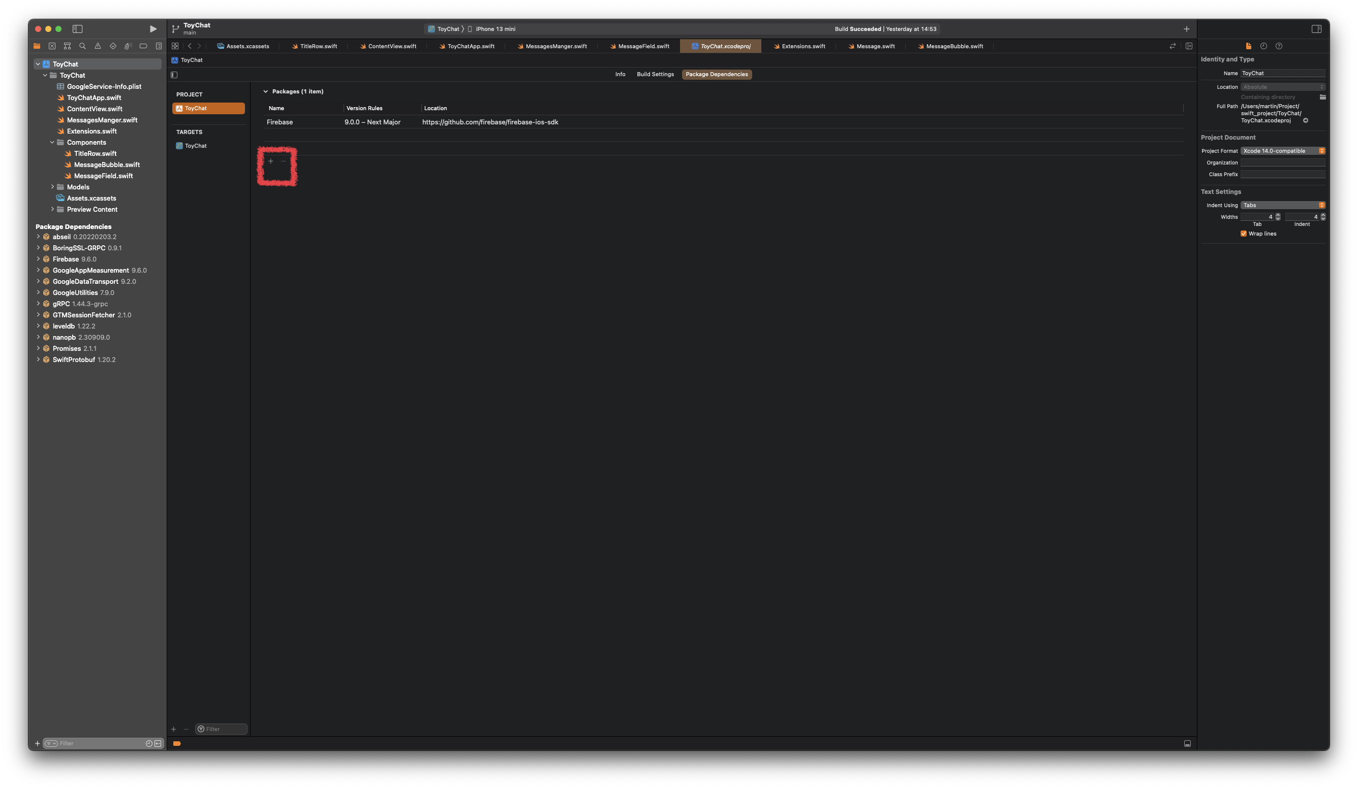 이제 Xcode 프로젝트에 Firebase를 추가해 주면 된다.
