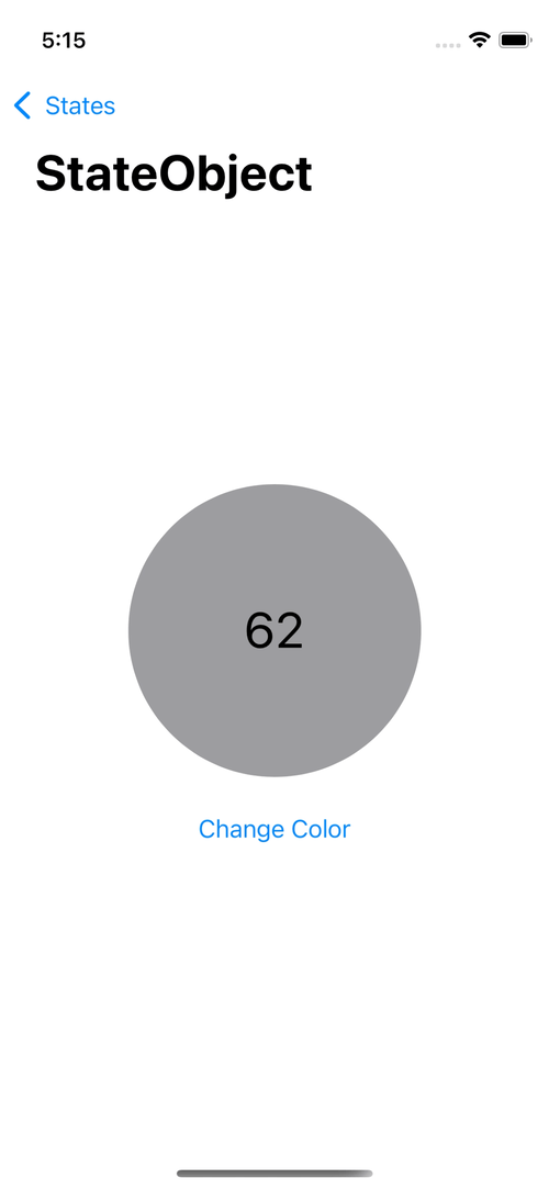 코드는 'Change Color' 버튼을 누를 때마다 State 변수로 NumberView의 배경 색을 무작위로 변경한다.
