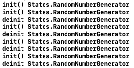 따라서 버튼을 누를 때마다 RandomNumberGenerator가 init과 deinit을 반복하는 것을