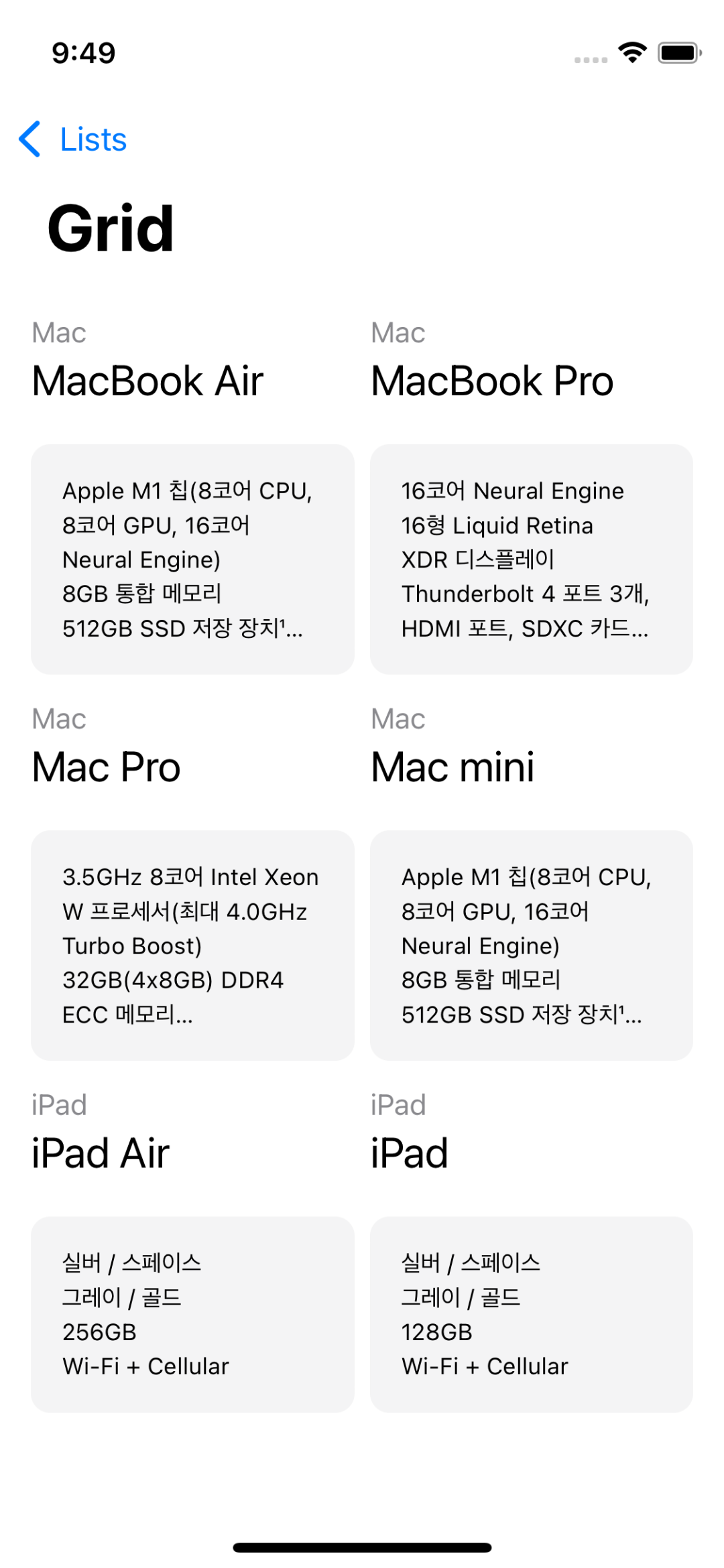 Grid는 격자 형식으로 View나 데이터를 표시하는 방식으로,