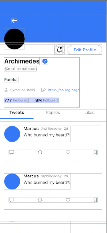 프로필 사진과 유저명, 계정명, 팔로우 정보를 사용한다.