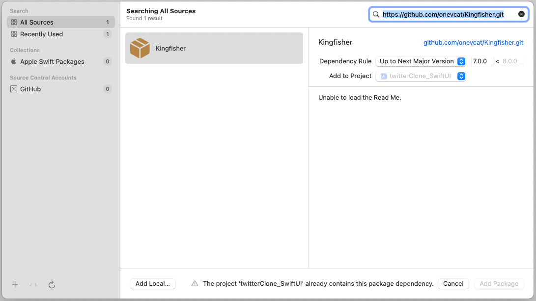 kingfisher를 설치했다면 사용할 코드에서 import해 사용하면 된다.