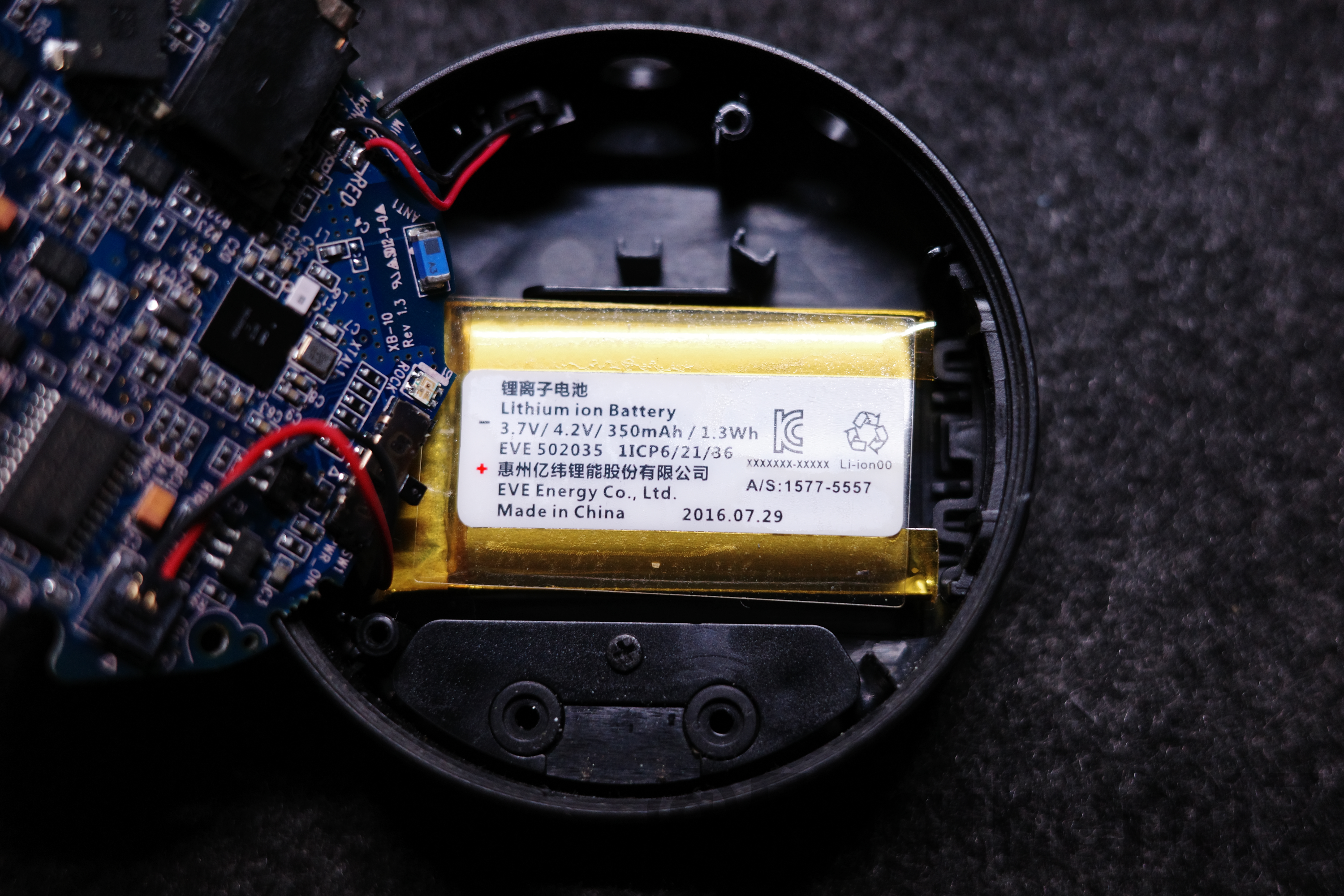 배터리는 커넥터로 메인보드에 연결 돼 있고, 하우징 바닥에 양면테이프로 부착돼 있다.