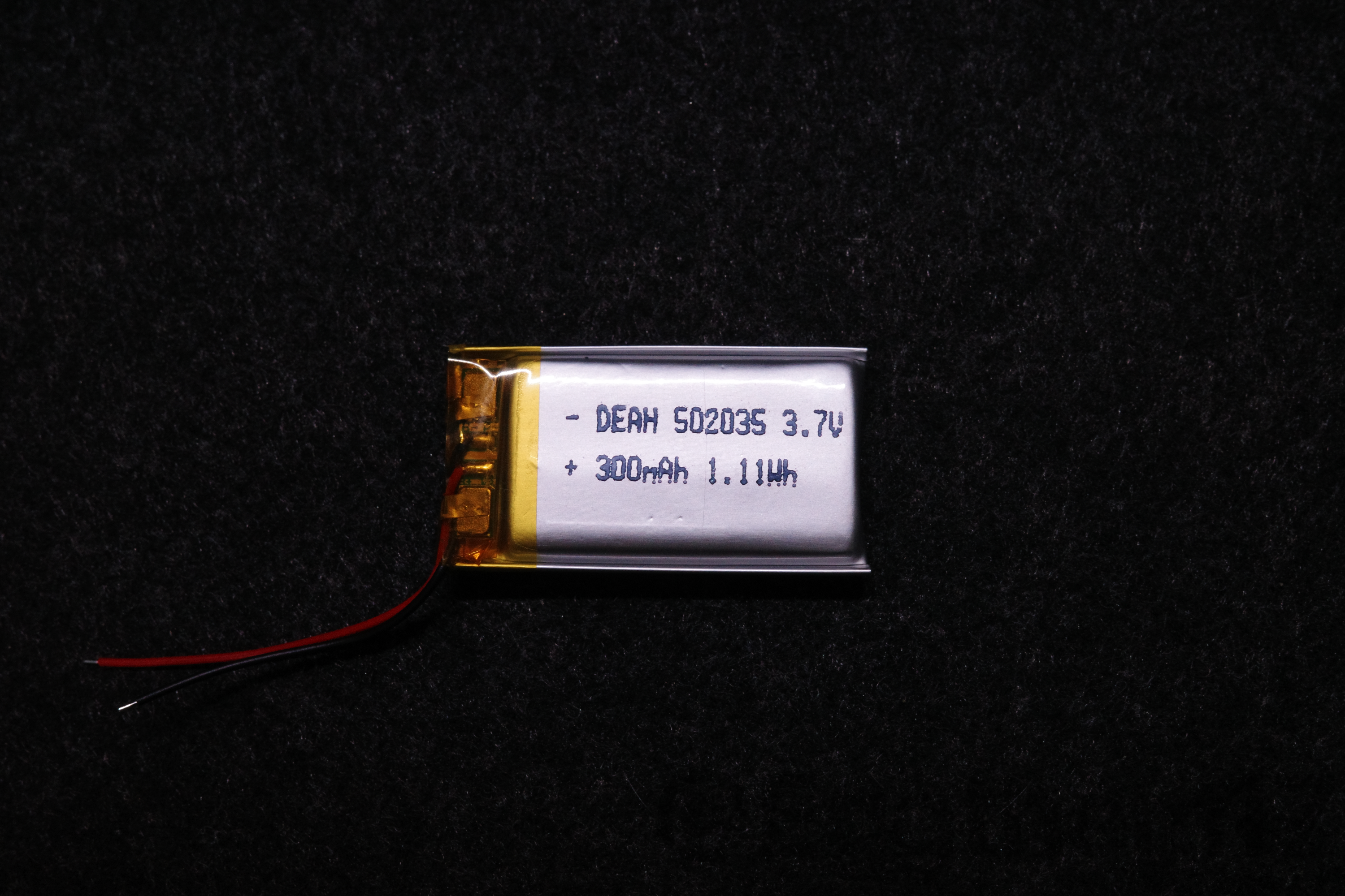 구매한 배터리는 3.7V 출력의 300mAh 용량의 Rithuim polymer 배터리다.