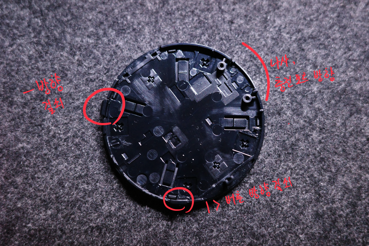 나사가 결착되는 출전포트 방향으로는 걸쇠가 존재하지 않아 유격을 만들기 쉬우므로 해당 부분으로 손톱이나 헤라를 사용해 테두리를 따라 이동하면 쉽게 분리할 수 있다.