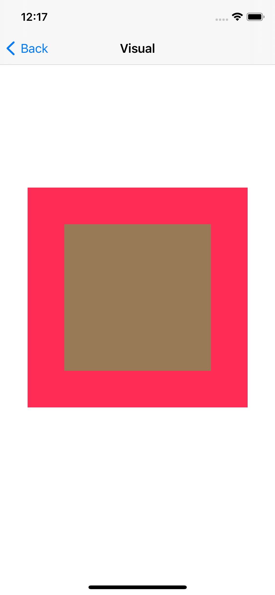 SubView는 Alpha가 0.5로, 투명한 상태에서 뒤에 존재하는 SuperView의 색이 비쳐 보인다.
