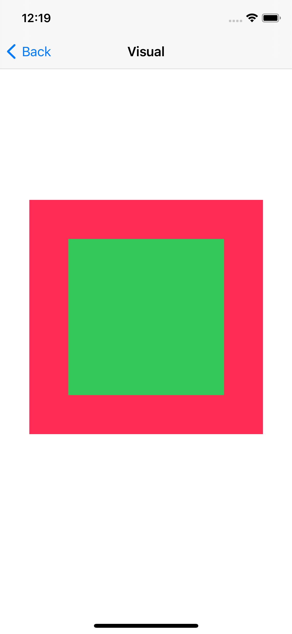 해당 씬의 두 개의 UIView는 붉은색의 SuperView와 초록색의 SubView 관계를 가지고 있다.