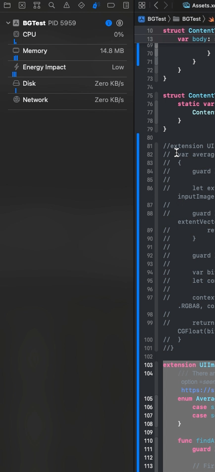 왼쪽이 CoreImage를 사용한 방식, 오른쪽이 Pixel 접근 방식이다.