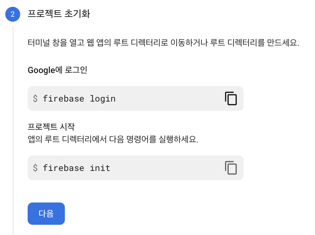 firebase login은 Firebase를 사용하는 계정으로 진행하면 된다.
