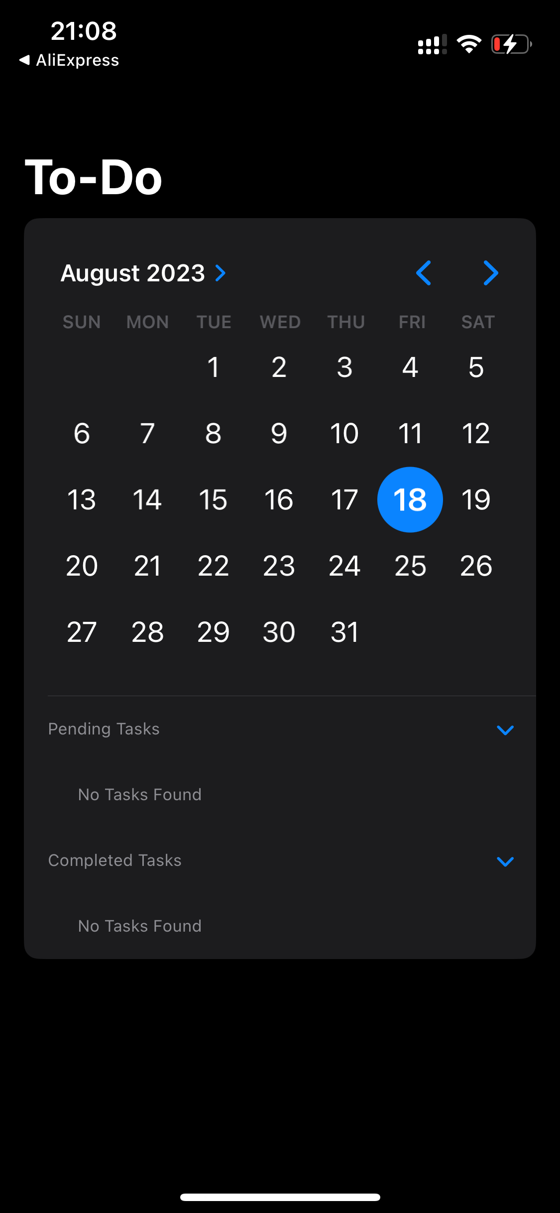 Text("No Tasks Found")