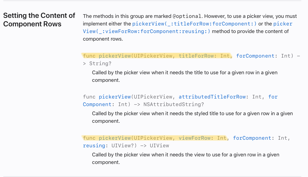 동작을 수행하는 메서드는 selectRow(index:inComponent:animated:)로,