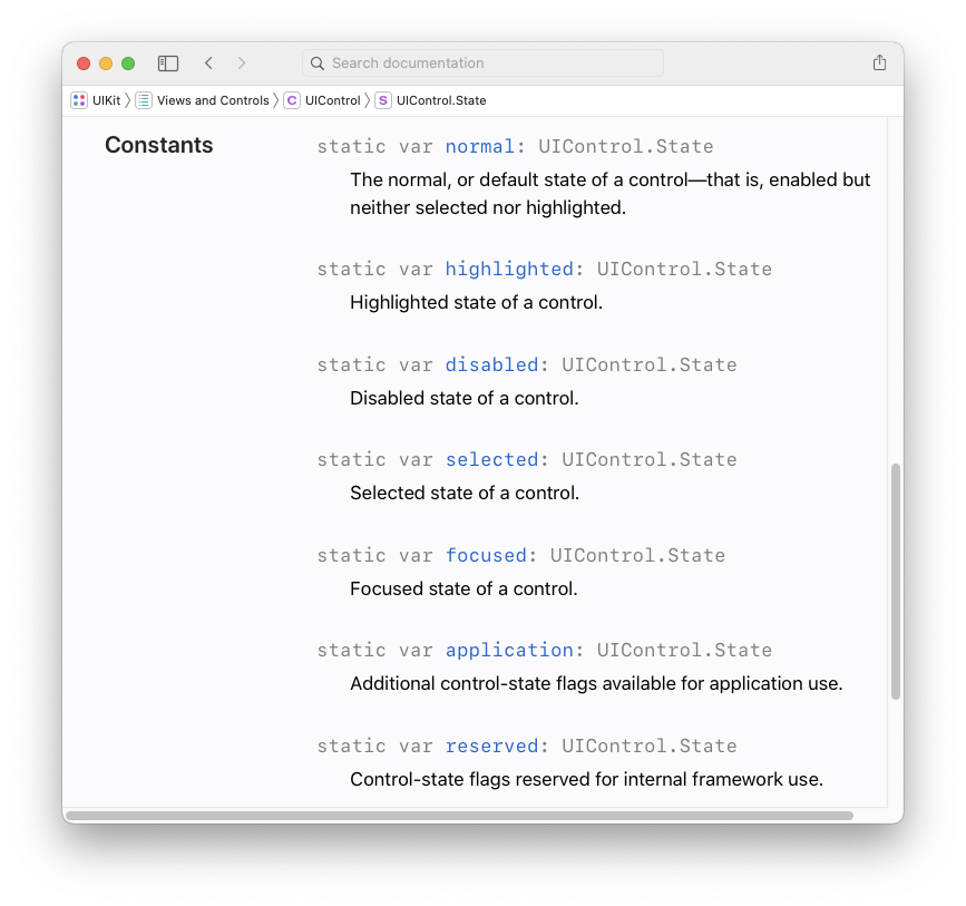 컨트롤들은 UIControl.state에 선언되어있는 상태를 사용한다.
