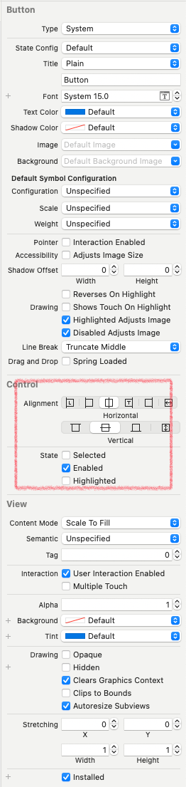 초기 상태는 AttributeInspector에서 설정하거나 isEnabled, isSelected, isHighlighted 멤버를 사용한다.