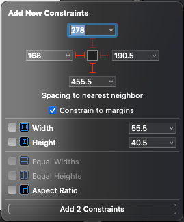해당 화면에 pageControl을 추가하고 horizontal과 아래쪽에 제약을 추가해 레이아웃을 고정한다.