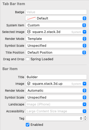 탭 바의 아이콘과 이름은 Attribute Inspector에서 변경했다.