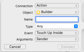 연결을 마치면 위와 같이 코드에 추가되고 Target-Action Pattern으로 연결이 완료된다.