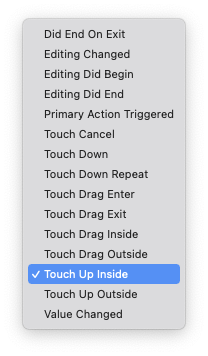 선택할 수 있는 event는 UIControl.Event에 선언되어있고, 종류는 위와 같다.