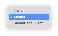 Sender로 설정할 것인지, Sender와 Event 모두 설정할 것인지를 선택한다.