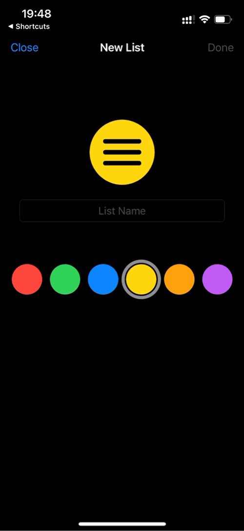 List의 name은 optional 속성이 아니고, 공백인 상태로 저장을 시도하면 오류가 발생하게 된다.