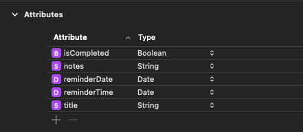 MyList는 Reminder로 연결되고, 여러개를 소유할 수 있으므로 To Many를 사용한다. inverse는 list 이다.
