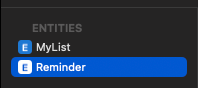 Reminder는 MyList로 연결되고, 하나를 소유해야 한다. To One을 사용한다. inverse는 reminders 이다.