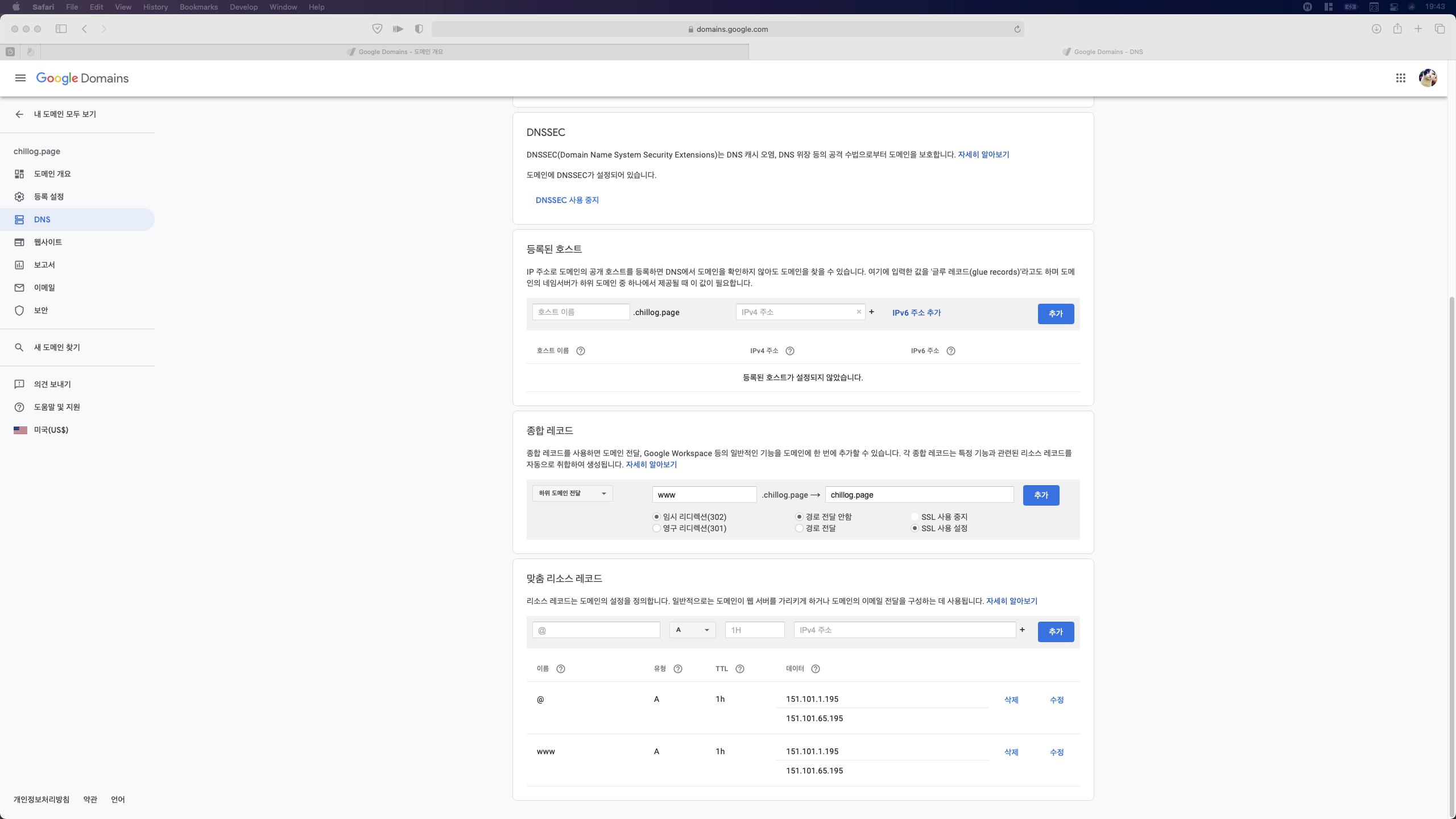 다시 한번 google domain 콘솔에 접속한다.