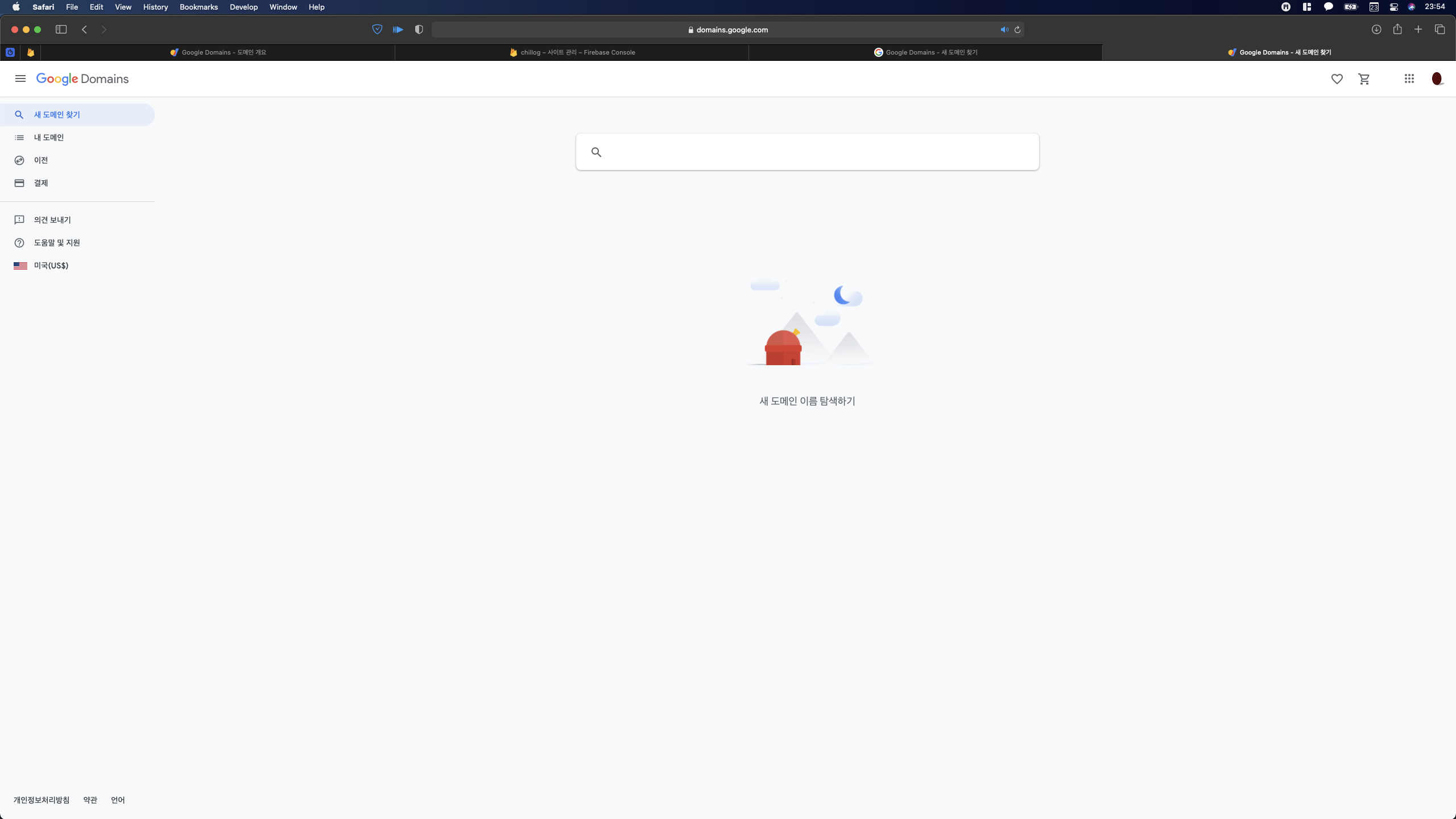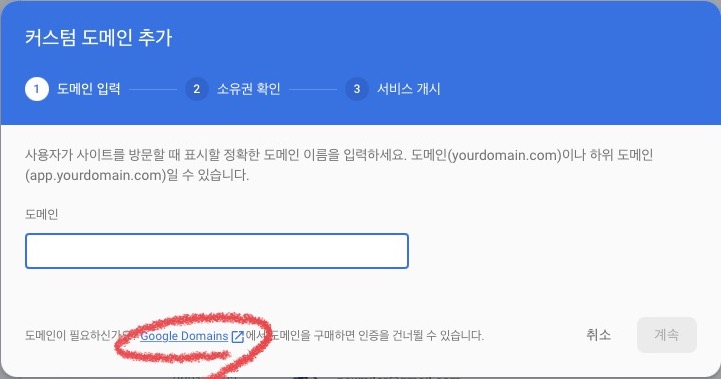 google domain 페이지는 다음과 같이 생겼다.