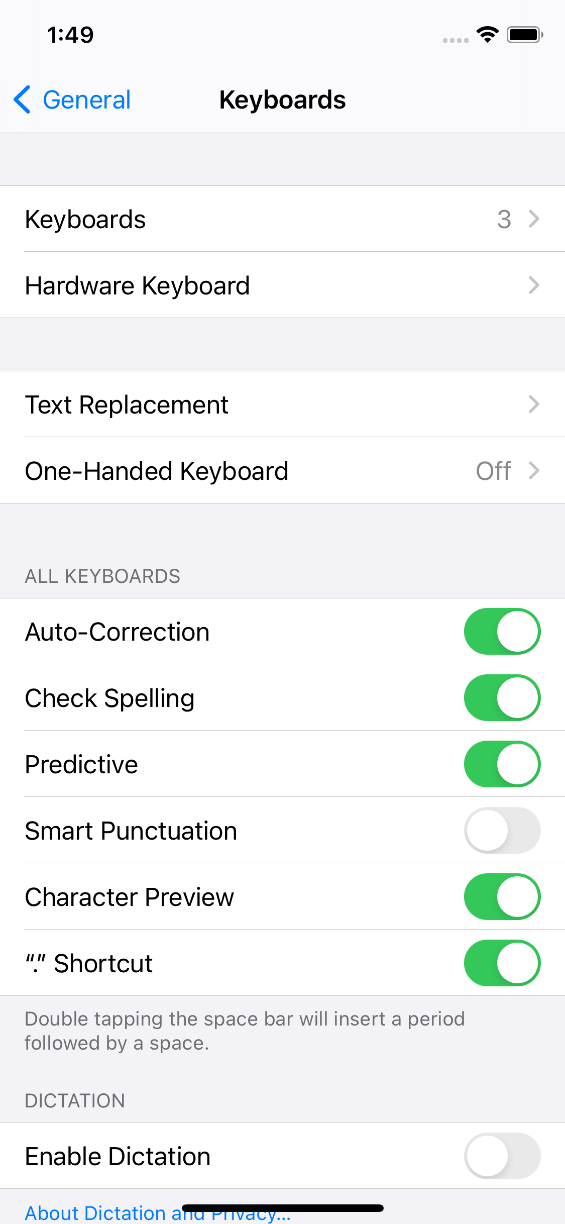 설정에서 키보드 설정이 활성화되어 있으면 앱에서 재설정할 수 있지만,