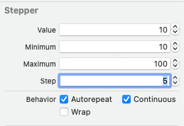 stepper는 위와 같이 초기값이 10이고, 최소값이 10, 최댓값이 100이며, 5 간격으로 값이 변경하도록 되어있다.