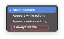 해당 속성을 변경할 때는 편집 모드 상태에선 적용되지 않기 때문에,