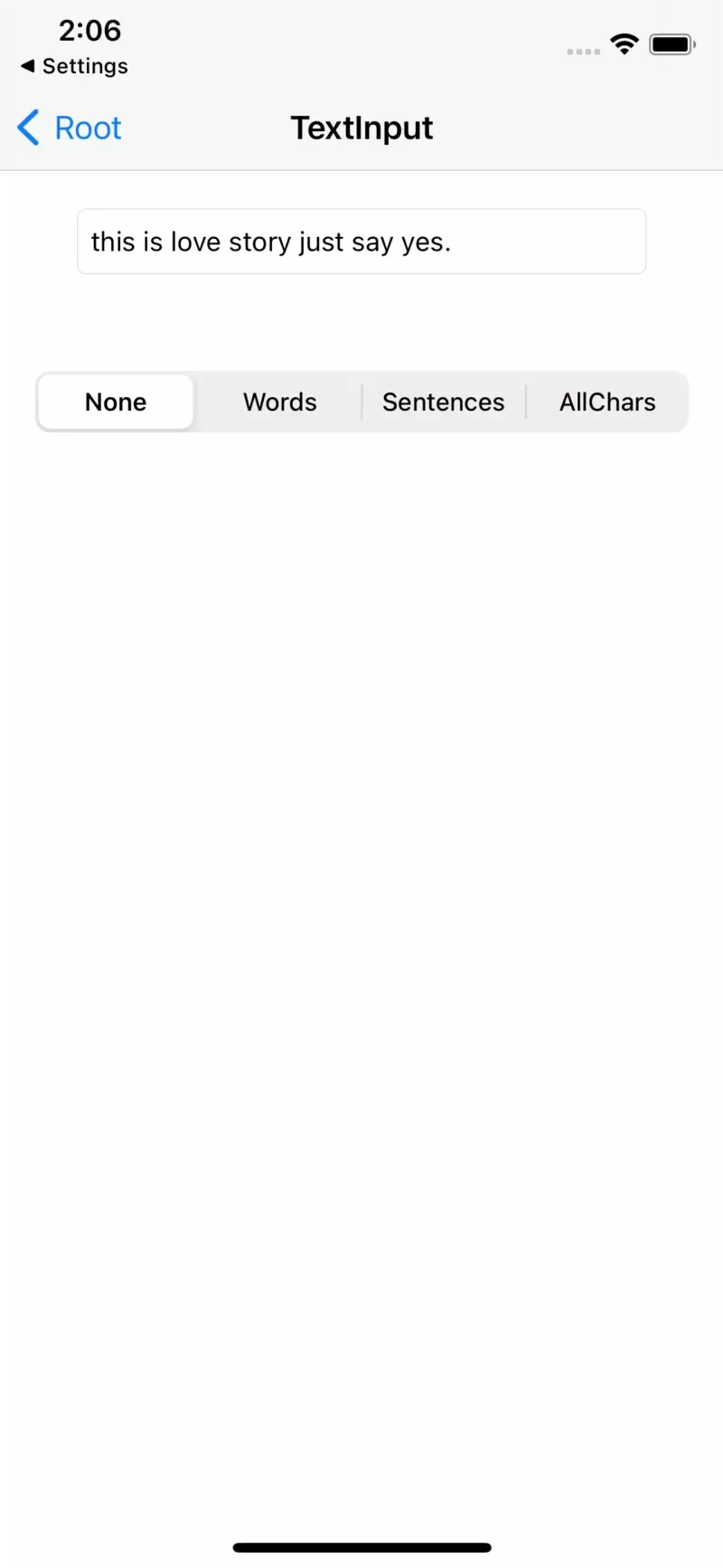 해당 속성을 설정하기 위해선 autocapitalizationType을 변경해야 한다.