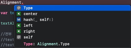 따라서 코드와 같이 textAlignment에 한 번 저장된 열거형을 통해 이후 다른 케이스로 전환할 수도 있다.