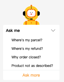 주문 확인 화면에서 우측에 플로팅 되는 'Ask me'를 통해 1차적으로 알리의 '봇'과 상담할 수 있다.