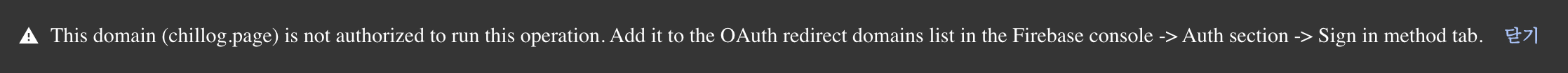 대충 해석하면 '이 도메인은 이 동작을 사용하기 위한 인증이 되지 않았다. 다음으로 가서 추가해라.'