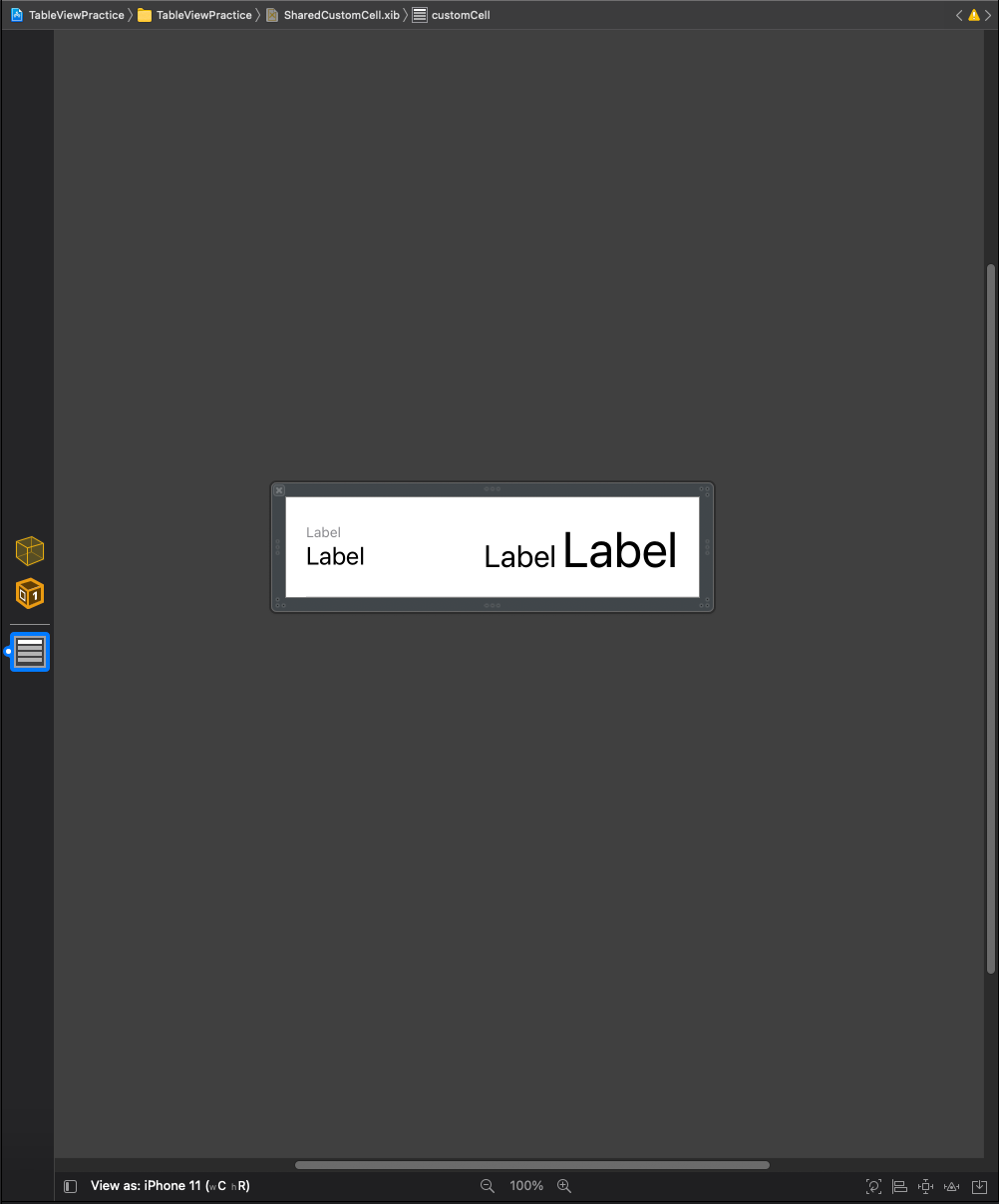 여러 씬에서 반복적으로 사용해야 한다면 별도의 파일로 prototype cell을 만들고 코드를 통해 tableview에 등록한다.