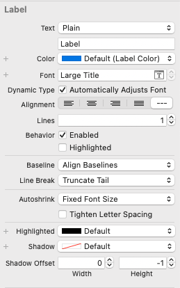 네 번째 Label의 Color는 Default, Font는 50으로 고정한다. Dynamic Type 옵션은 활성화하지 않는다.