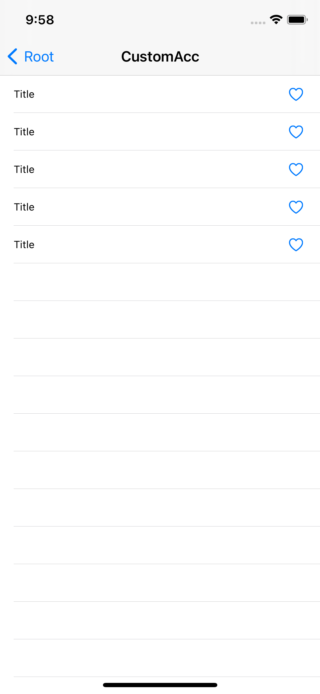 결과와 같이 위의 방법은 셀의 오른쪽에 Custom Accessory View를 추가할 때 사용한다.